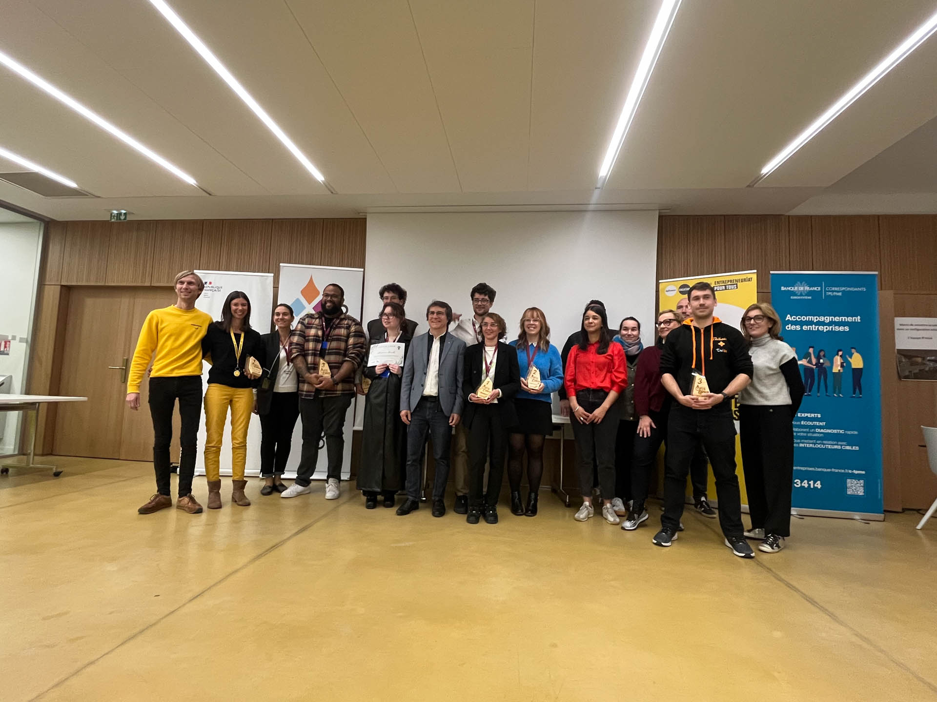 Dans la catégorie Développement (pour les jeunes entreprises déjà en activité), Charles Lemoine et Flora Libessart décrochent le 1er prix pour « Boxabonheur », jeux de société visant à renforcer l’harmonie familiale et la confiance en soi des enfants, devant Gibril-Gabriel Bachouchi pour « Kuzog » avec sa solution agronomique hydrobio permettant d’améliorer le rendement des sols. Le 3e prix a été attribué à Florent Pontiac et son entreprise EXIAA pour sa solution « Entrebot », un logiciel RH permettant de faciliter la mise en relation des recruteurs avec les candidats pour passer leurs entretiens d’embauche.