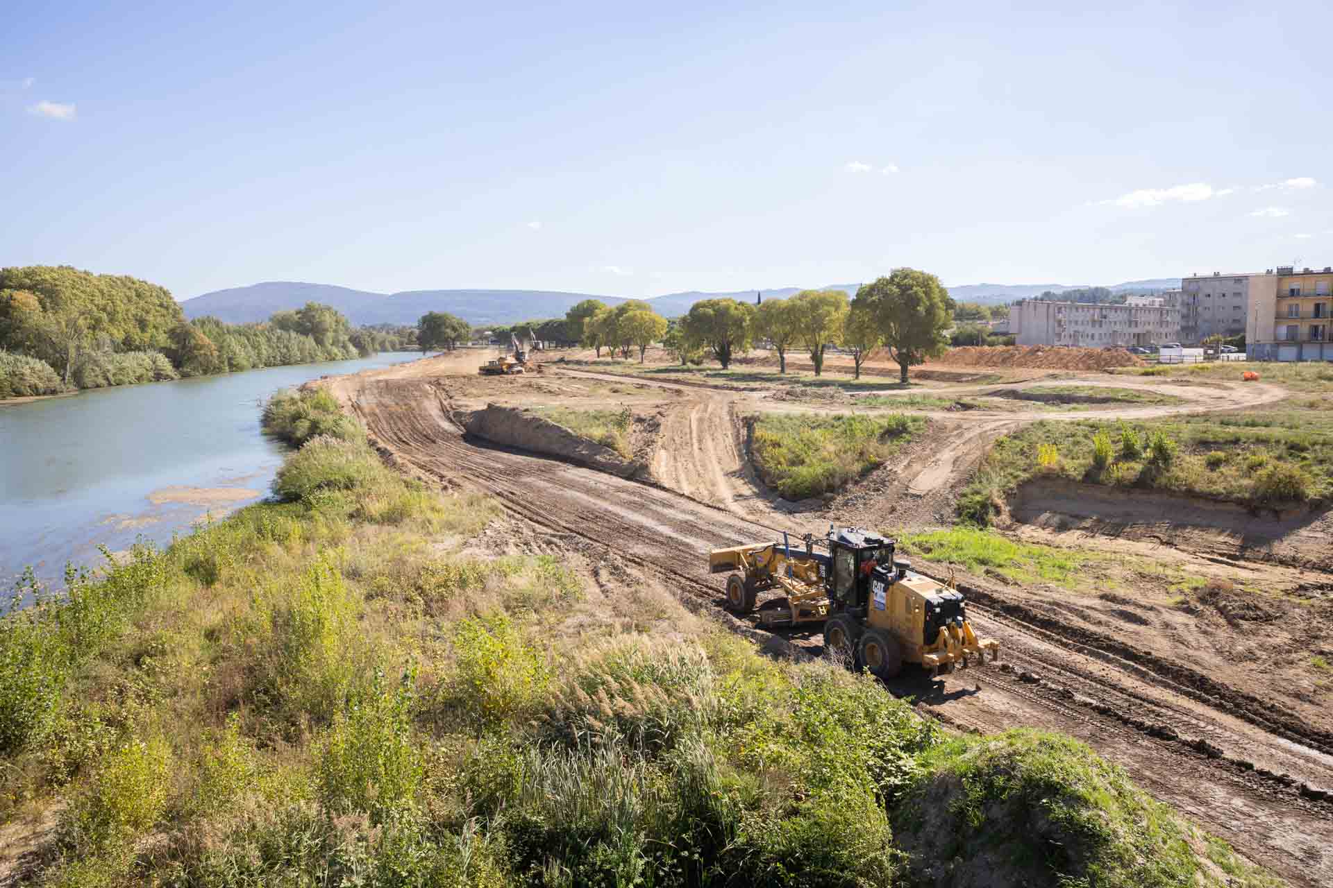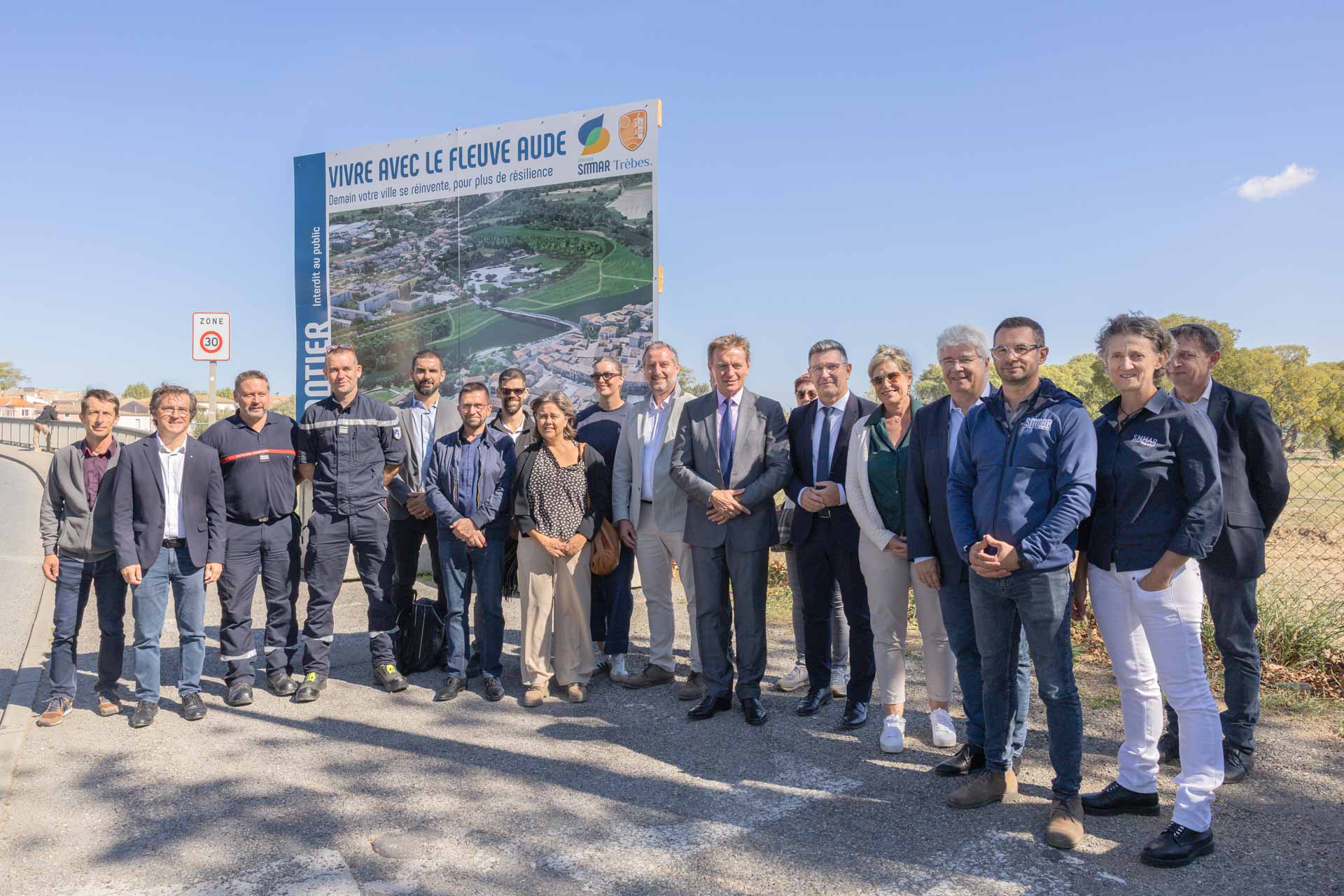Le président de Carcassonne Agglo, Régis Banquet était aux côtés du maire de Trèbes et président du SMMAR, Eric Ménassi, ainsi que du préfet de l’Aude, Alain Bucquet, pour une visite du chantier d’envergure des berges de l’Aude à Trèbes.