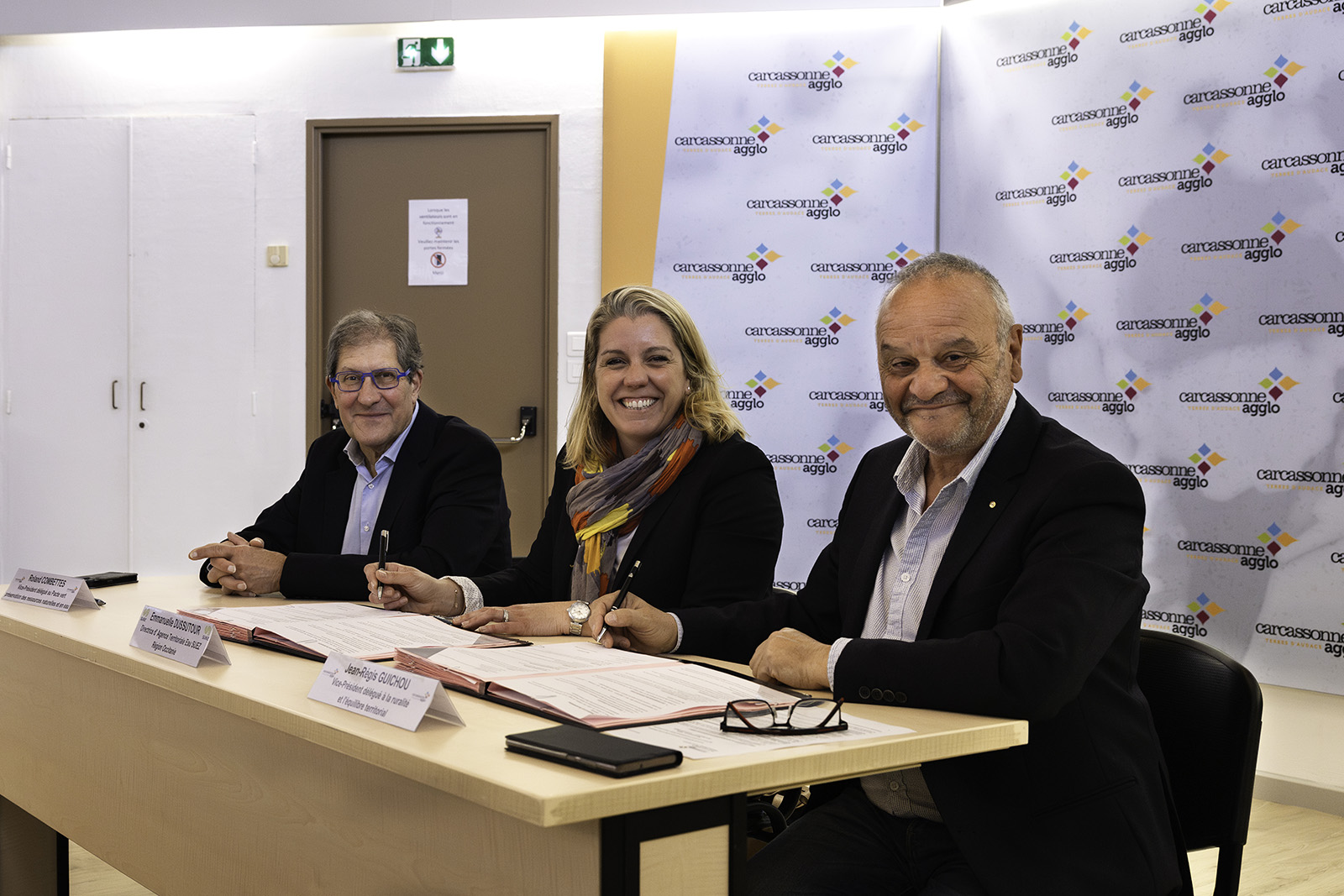 Ainsi, Jean-Régis Guichou, maire de Couffoulens et vice-président de Carcassonne Agglo délégué à la Ruralité et l’Équilibre territorial et Emmanuelle Dussutour, directrice de l’agence territoriale eau Suez – région Occitanie, ont signé une convention de partenariat, liant les France Services d’Alzonne, Capendu et Couffoulens au groupe Suez.