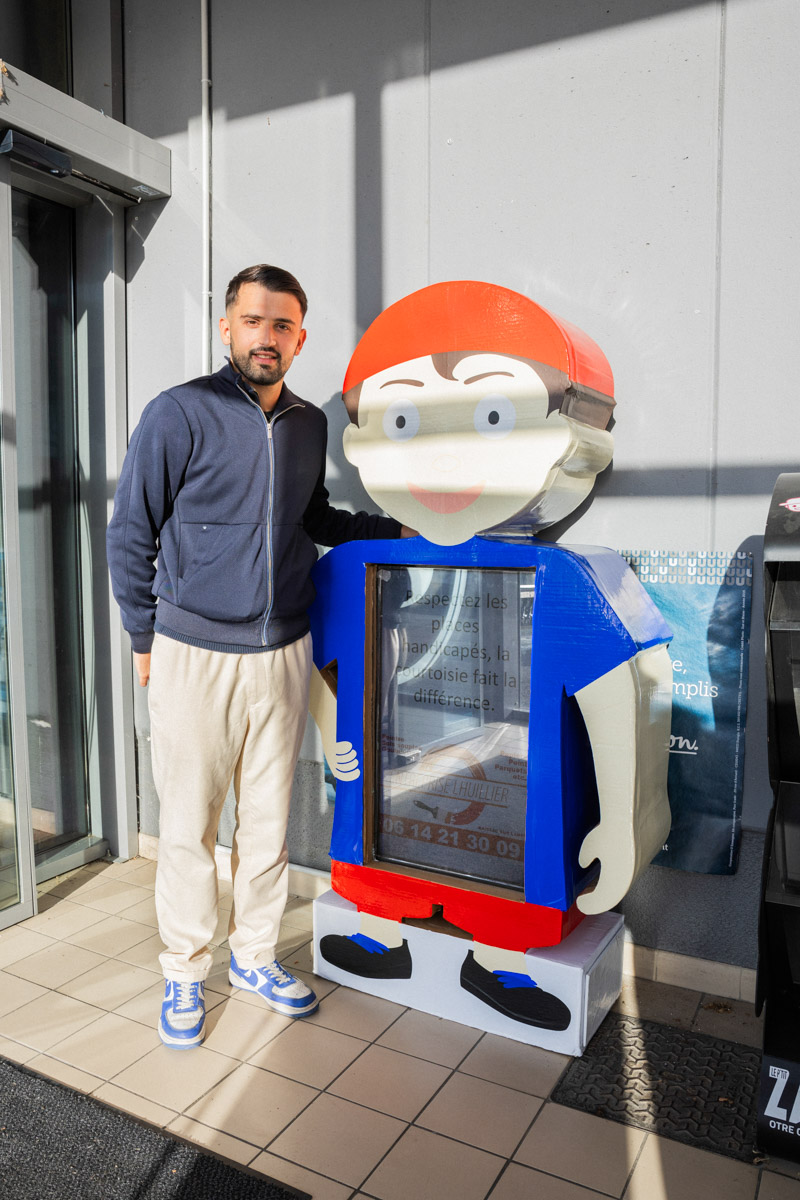 Un temps de réflexion de près de 7 mois lui a permis de murir son projet de créations de bonhommes en carton avec écran intégré. Cette figurine pédagogique de signalisation et de prévention, qui répond au nom de “Kinkin”, sera installée dans les galeries de magasins en zones commerciales.