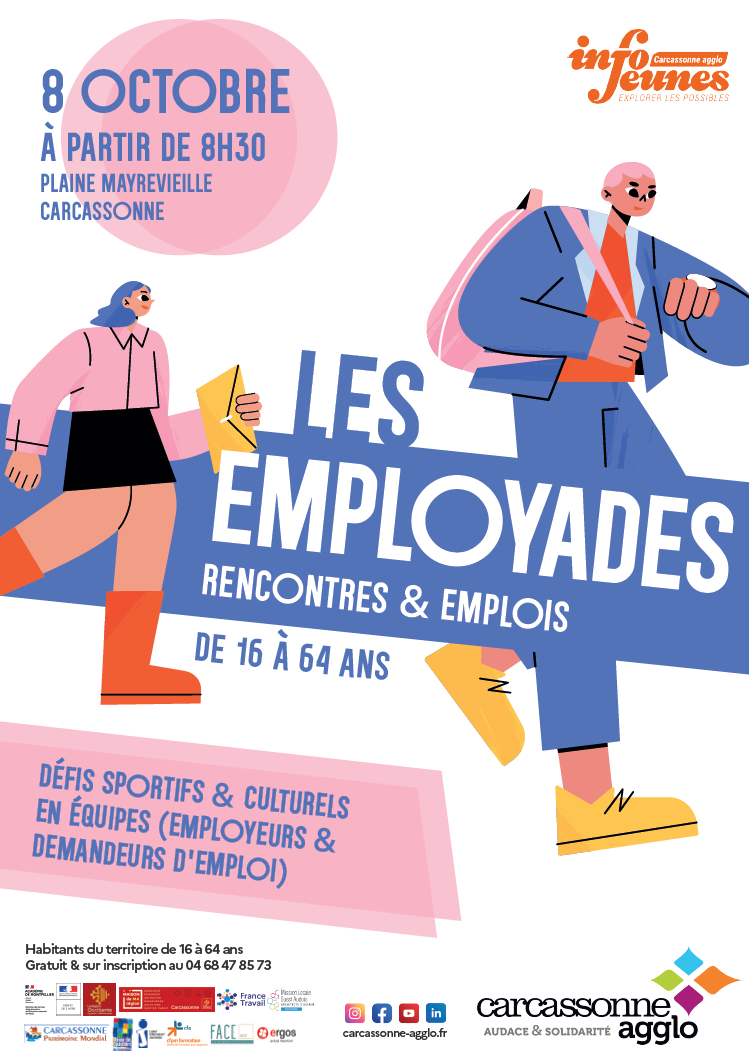 « Les Employades » auront lieu sur les terrains de la Plaine Mayrevieille, le mercredi 8 octobre, de 8h30, avec l’accueil des participants et la composition des équipes, jusqu’à l’apéritif de clôture, à 13h. Au programme, entretemps : défis sportifs, quizz, escape game, information… et, à 11 h 30, rencontres et entretiens employeurs-demandeurs d’emploi