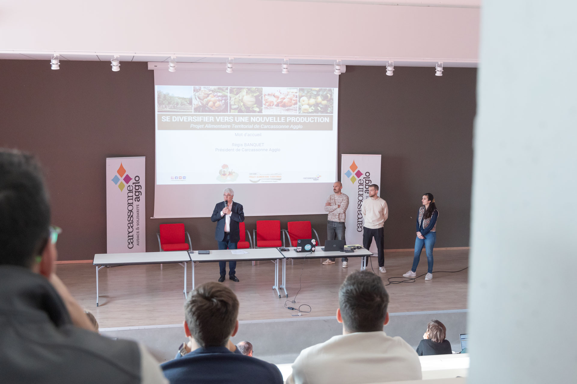 Le témoignage d’agriculteurs et viticulteurs, s’étant lancés dans l’arboriculture, le maraichage, la production de Plantes à Parfum, Aromatiques et Médicinales (PPAM) ou l’élevage… précédait un temps de rencontres avec des conseillers et animateurs sur différents stands. « L’agriculture occupe près de 50 % des surfaces de notre territoire, avec 1 500 exploitations, dont plus de 200 producteurs bio, nous avons une place sur le podium de la Région Occitanie. L’avenir de l’agriculture est un sujet stratégique. » détaillait Régis Banquet, qui concluait son intervention sur le fait « qu’il serait toujours aux cotés des agriculteurs et de la future génération», soulignant « l’investissement des collectivités et l’Agglo en particulier, en matière d’irrigation, avec 9 projets déjà réalisés, et 4 ou 5 de retenues collinaires à venir…