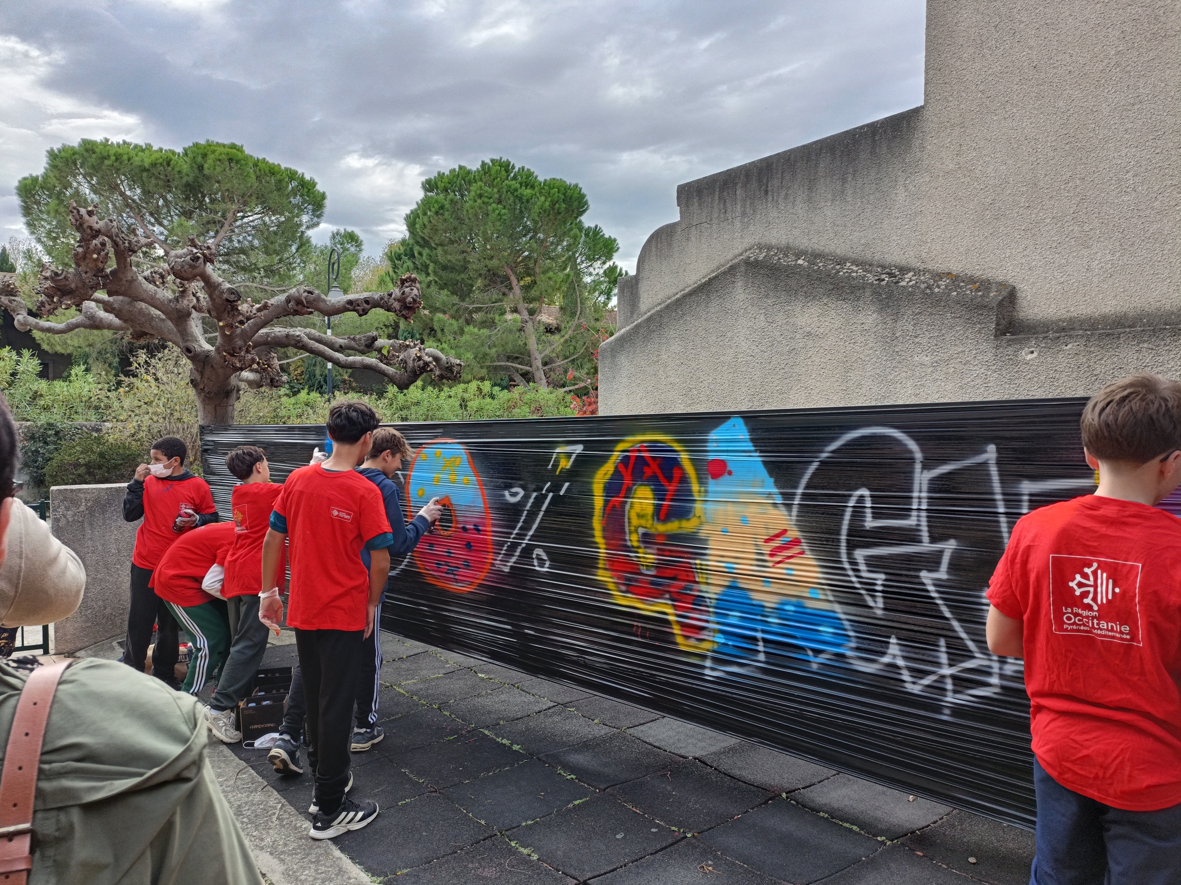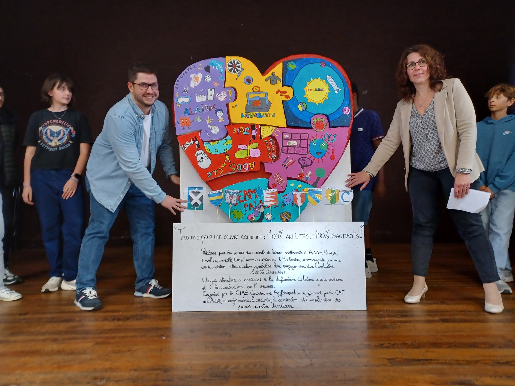Initié et coordonné par Fabien ALMERAS, directeur AL Ados, ce projet fédérateur a permis de rassembler les jeunes, les directeurs et les animateurs des AL Ados du secteur centre autour d’une œuvre collective intitulée “Tous unis pour une œuvre commune”, réalisée sous la houlette de la peintre Maria Slovakova. Le moment fort de la journée fut l’assemblage symbolique des différentes parties du tableau, marquant avec émotion l’union et la fierté collective de l’ensemble des participants.