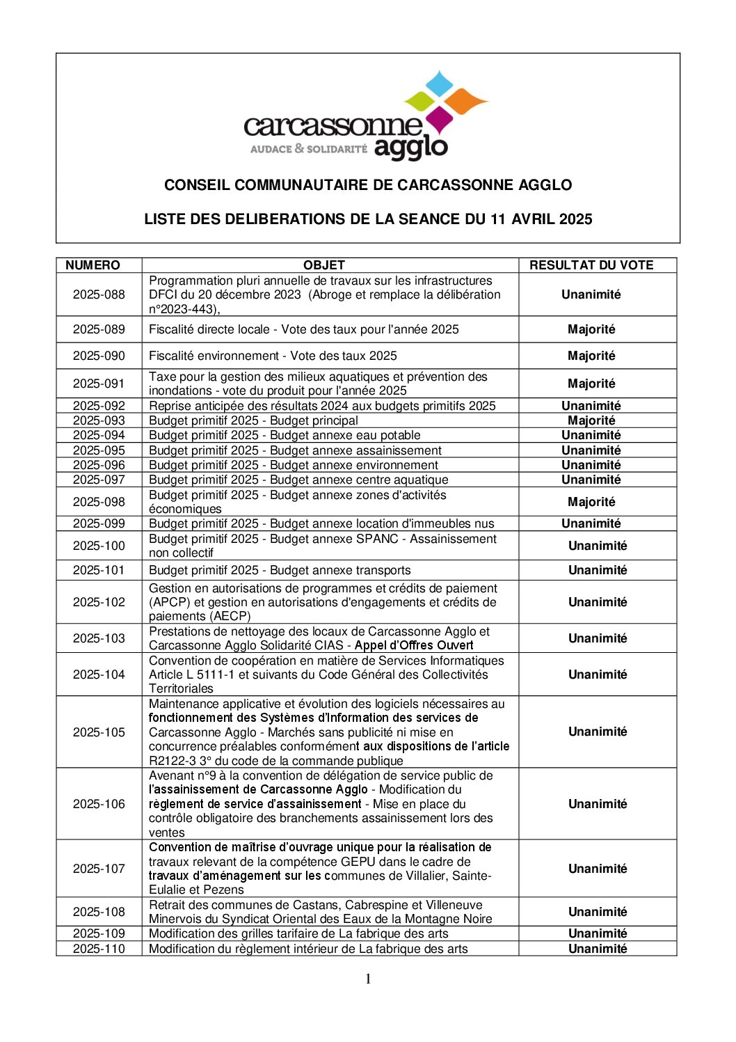 Liste des délibérations du conseil communautaire du 11 avril 2025