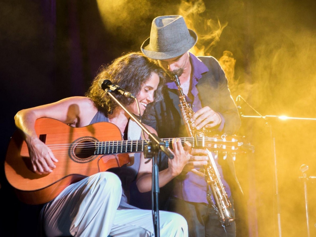 Entre Marianne et Marius, c’est la complicité sans faille de deux artistes qui se connaissent par coeur, et qui ont une profonde envie de se réinventer. Elle : chanteuse, guitariste, auteure, compositrice et cheffe de choeur, est passionnée de World Music, avec 30 années d’une belle carrière à la fois underground et internationale, en communion avec son public. Lui : saxophoniste et génie musical, est fou de son et de jazz, mais aussi très ancré dans le paysage sonore de son époque. Ensemble, ils n’ont qu’une envie, nous faire danser ! Leur principe est simple : poser le décor en direct live avec deux loopers, des instruments acoustiques et des prods électro, pour ensuite plonger dans leur domaine de prédilection, l’impro !