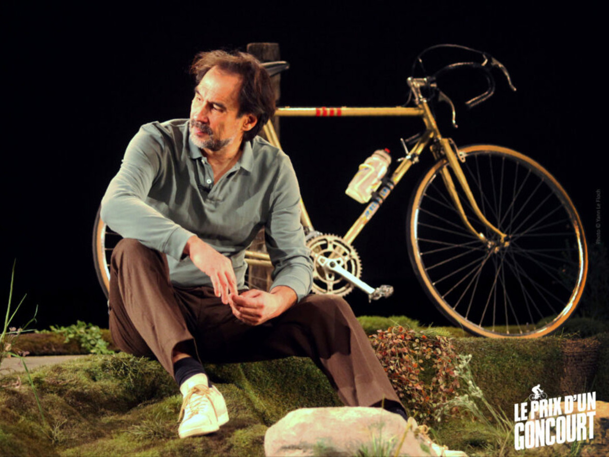 L’immense succès du Prix Goncourt 1972 pour L’Épervier de Maheux déclencha pour le Nîmois Jean Carrière une avalanche de catastrophes : ce fut pour lui le début d’une chute. Mais sa rage de vivre lui fit remonter la pente et, telle une renaissance, l’écrivain nous raconte avec autodérision sa drôle d’aventure : Le prix d’un Goncourt, l’histoire d’une gloire qui se mua en malédiction. Narration haletante et tragicomique racontée notamment sur son propre vélo, ce spectacle est le parcours d’un homme inadapté à la notoriété et poursuivant sans relâche, par les moyens de l’écriture, le royaume de son enfance : ce paradis terrestre où il vécut l’accord parfait entre la nature et lui. Écrire car c’est la seule issue : écrire avec un pistolet sur la tempe.