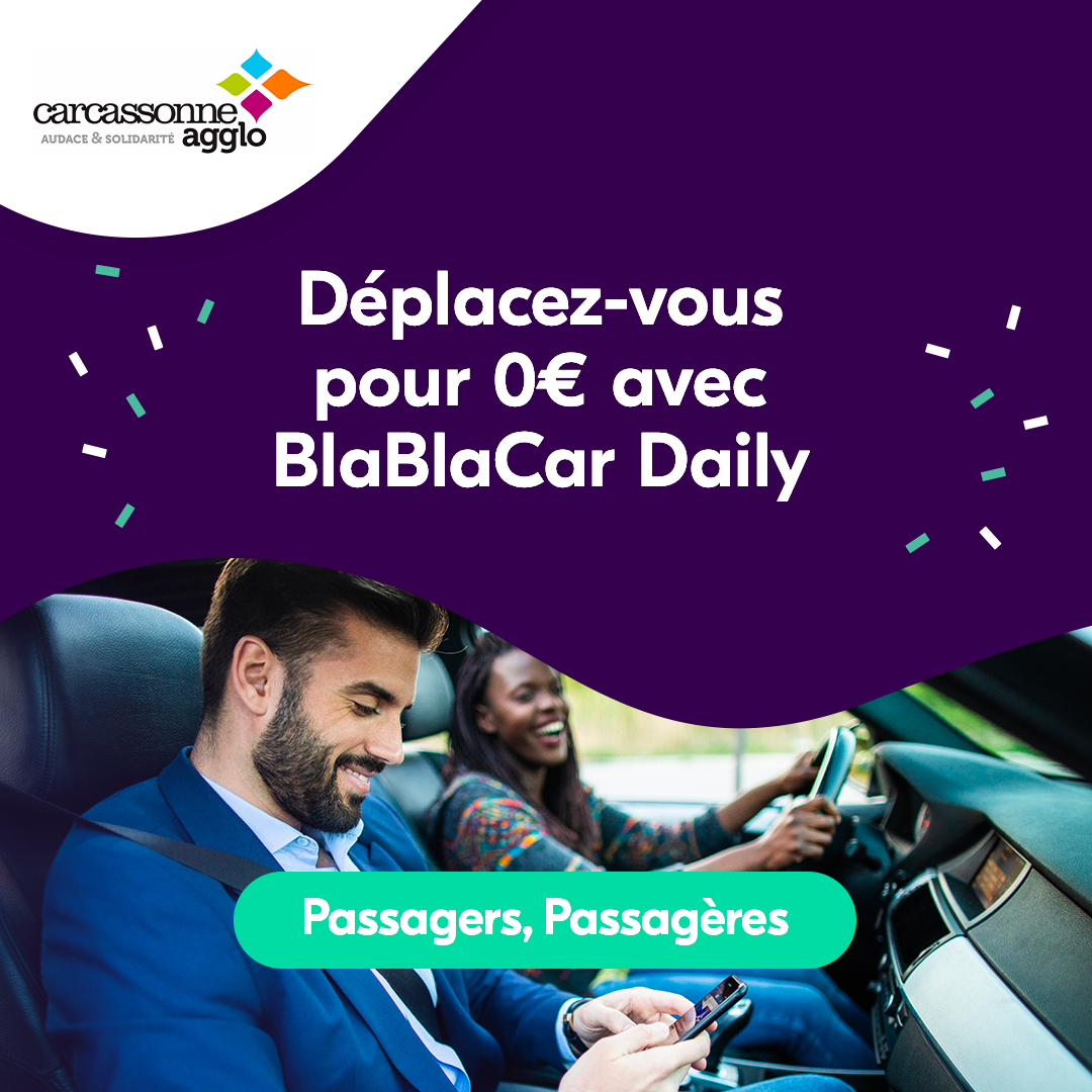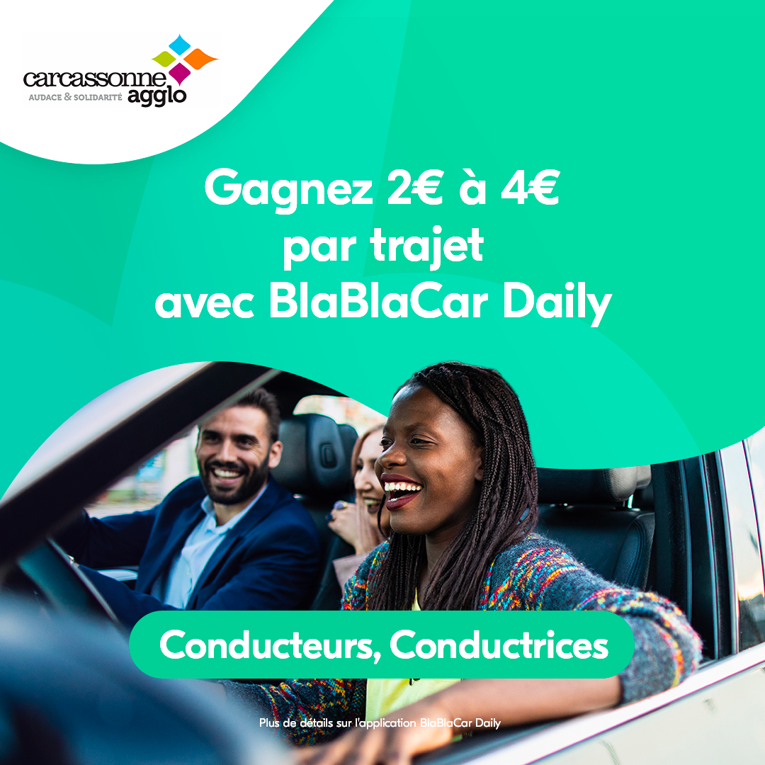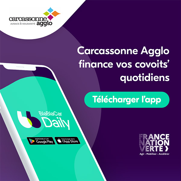 Information 2024 : Depuis février 2024, Klaxit est devenu “BlaBlaCar Daily”. L’application a changé, les avantages restent les mêmes pour les usagers de Carcassonne Agglo